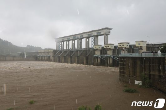 경기도 연천군 군남댐에서 임진강 상류의 물이 흘러나오고 있다.(자료사진)2020.8.4/뉴스1 ⓒ News1 구윤성 기자