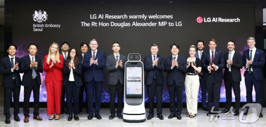 더글라스 알렉산더 영국 국무상이 1일 서울 강서구 마곡 LG AI연구원을 방문해 기념촬영하고 있다.(LG 제공) |