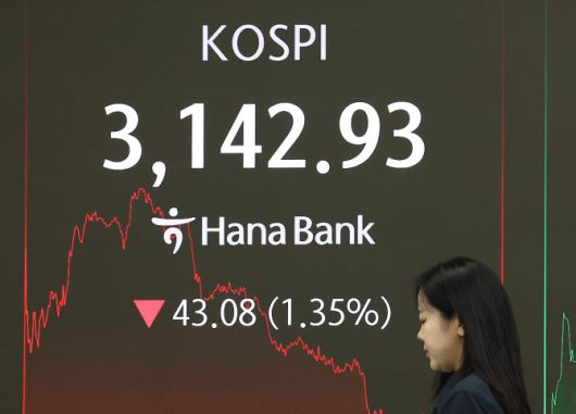 1일 엠피닥터에 따르면 코스피는 전 거래일 대비 43.08포인트(1.35%) 내린 3142.93에 거래를 마쳤다. 이날 코스피는 3164.58로 전 거래일(3186.01)보다 하락 출발했다. 유가증권시장에서 개인이 3461억원어치 샀으나 외국인과 기관이 각각 2674억원, 1932억원어치 팔면서 지수 하락을 이끌었다. 프로그램 매매는 차익과 비차익을 합쳐 3567억원 순매도를 기록했다.
