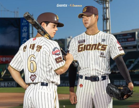 이번 유니폼은 롯데웰푸드가 1975년에 선보인 가나초콜릿 출시 50주년을 기념해 제작됐다.