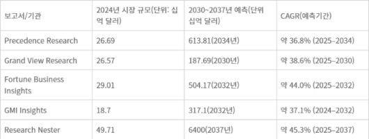 주요 시장분석 기관별 헬스케어 AI 시장 전망 |