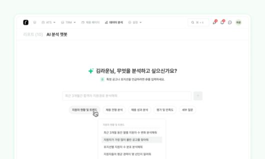 예를 들어 "면접관별 지원자 평가 점수 배분을 분석해줘", "개발 직군 채용에서 두드러진 특징과 트렌드를 알려줘"와 같은 질문을 입력하면, AI가 관련 데이터를 자동으로 분석해 직관적인 결과를 도출한다.