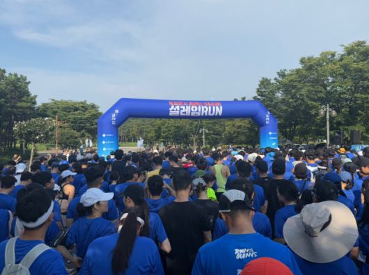 일요일 오전 7시 30분. 이른 시간임에도 서울 상암 평화의공원 평화광장에는 파란색 티셔츠를 입은 3000여 명의 인파가 모였다. 각양각색의 러닝화와 선글라스, 모자까지 갖운 참가자들은 저마다 준비운동을 하며 포토존 앞에서 연신 카메라 셔터를 눌러댔다.