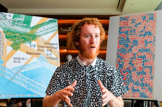 외국 예술가의 눈에 한글은 어떻게 보일까. 미로 같은 그림으로 유명한 영국의 인기 작가 미스터 두들(샘 콕스)은 한글을 이루는 글자들을 보고 "살아 움직이는 캐릭터처럼 느껴졌다"고 했다. 미스터 두들은 이달 1일 개막하는 '2025 한글 국제 프레 비엔날레'에 참가해 한글에서 영감을 받은 작품을 처음 선보이게 됐다.