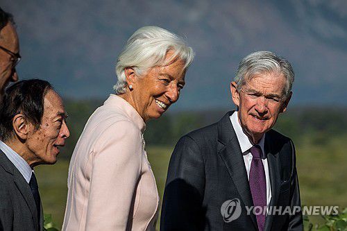 제롬 파월 연준 의장(오른쪽), 크리스틴 라가르드 ECB 총재(가운데)