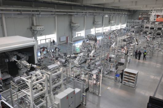 주요 부품을 용접하는 보디숍에 들어서자 매캐한 용접 냄새가 코를 찔렀다. 로봇팔이 모든 용접 작업을 도맡아 하고 있었다. 직원들이 공장 내부를 분주하게 오가는 모습이 목격되기는 했지만 그마저도 거의 눈에 띄지 않았다. 공장 관계자에 따르면 3개 라인의 근무자는 채 100명도 되지 않았다. 대신 700대 넘는 로봇이 투입돼 자동화 공정을 전담하고 있었다. 기존 AGV 물류 차량이 정해진 유도선을 따라 움직이는 것과 달리 AI 알고리즘과 라이다 센서를 활용한 181대의 AMR 물류 로봇이 투입돼 스스로 이동 경로를 인식하고 주행하며 공장을 바쁘게 오갔다.