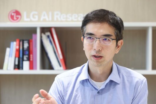 이홍락 엘지(LG) 인공지능(AI)연구원 공동 연구원장이 지난달 28일 서울 강서구 마곡동 연구원 본사에서 인터뷰하고 있다. 엘지 인공지능연구원 제공 |