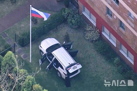 [시드니(호주)=AP/뉴시스] 김재영 기자 = 호주 시드니에서 1일 한 남성이 SUV 차량을 몰고 러시아 영사관 출입문으로 돌진한 뒤 체포되었다고 경찰이 말했다.
