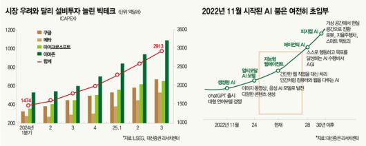 거품론을 논하기엔 “너무 이르다”는 평가도 나온다. 2022년 11월 오픈AI 챗GPT 공개를 AI 패러다임의 시작점이라고 본다면, AI 패러다임은 시동을 건 지 3년이 채 안 된 상태다. 문남중 대신증권 애널리스트는 “과거 인터넷과 모바일 혁명 지속 기간은 각각 18년과 15년 정도”라며 “현재 3년 정도 된 AI 혁명 지속 기간을 감안하면 AI 버블을 논하는 건 시기상조”라고 말했다.