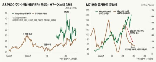 AI 투자 열풍이 1990년대 말 닷컴 버블과 유사하다는 샘 알트먼 CEO 주장이 틀린 말도 아니다. ‘닷컴 버블’을 예견한 하워드 막스 오크트리캐피털 회장은 지난 8월 13일 투자자에게 보낸 메모에서 M7을 제외한 S&P500 기업 493곳의 평균 주가수익비율(PER)은 22배로, 역사적 평균을 크게 웃돈다고 지적했다. 닷컴 버블 붕괴 직전(25배)에 거의 근접한 수치다.