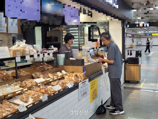 서울 지하철 5호선 청구역 내 한 빵집에서 손님이 빵을 계산하고 있다. 백민정 기자 |