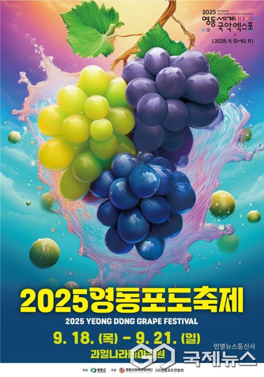 (영동=국제뉴스) 이재기 기자 = 충북 영동군과 영동군문화관광재단은 오는 18일부터 21일까지 과일나라테마공원 일원에서 2025 영동포도축제를 개최한다고 2일 밝혔다.