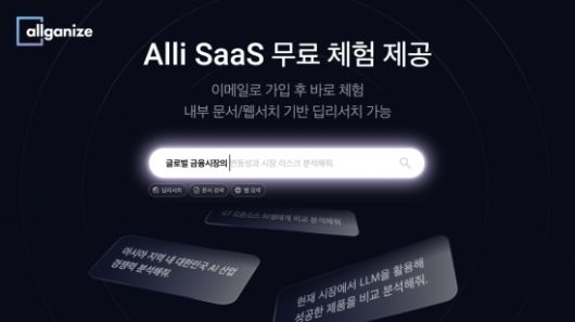 올거나이즈는 거대언어모델(LLM) 기반 업무 자동화 솔루션 '알리'의 서비스형 소프트웨어 버전인 '알리-사스' 무료 체험 기회를 제공한다고 2일 밝혔다. 별도의 시스템 설정 없이 회사 이메일 계정을 통해 손쉽게 가입 가능하며 2주간 무료 사용할 수 있다.