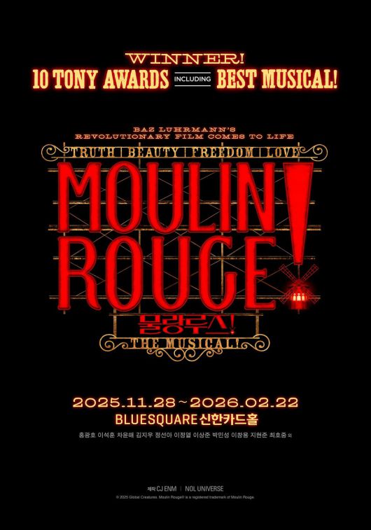 CJ ENM의 글로벌 공동 프로듀싱작인 ‘물랑루즈!’는 지상에서 가장 화려한 곳 파리의 클럽 ‘물랑루즈’에서 일어난 가슴 벅찬 사랑 이야기를 그린 뮤지컬로, 제74회 아카데미 시상식에서 작품상 포함 8개 부문에 노미네이트, 2개 부문에서 수상한 바즈 루어만 감독의 동명 영화를 원작으로 한다.