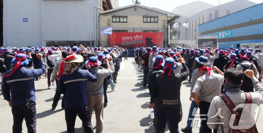 (울산=뉴스1) 조민주 기자 = 올해 임금 및 단체협상에서 난항을 겪고 있는 HD현대중공업 노동조합이 나흘간 부분 파업을 벌인다.