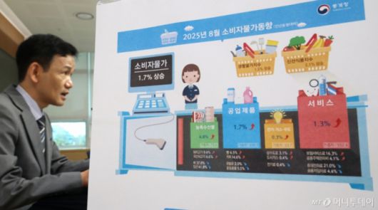 [세종=뉴시스] 강종민 기자 = 이두원 통계청 경제동향통계심의관이 2일 세종시 정부세종청사에서 2025년 8월 소비자물가동향을 발표하고 있다. 지난달 소비자물가지수는 116.45로 전년 동월 대비 1.7% 상승한 것으로 나타났다. 2025.09.02. |