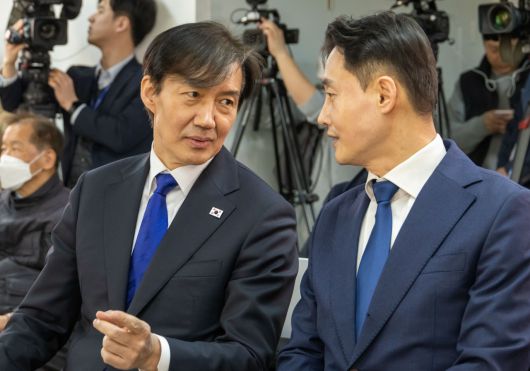 조국 조국혁신당 대표(왼쪽)과 윤재관 수석대변인. [조국혁신당 제공] |