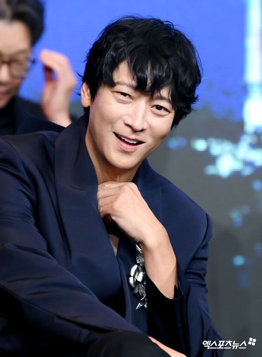 배우 강동원이 제작발표회에 참석해 질의응답 시간을 갖고 있다.