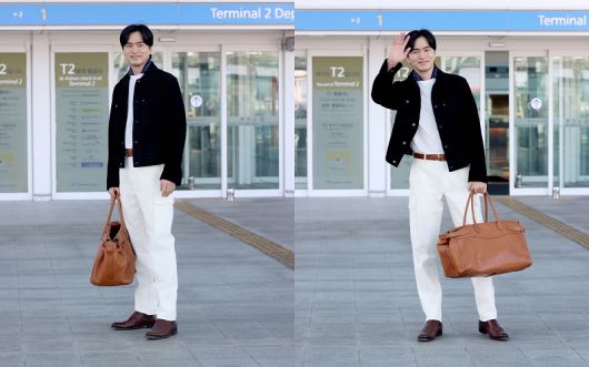 이진욱은 이날 출국길에서 젠틀한 공항패션을 선보이며 눈길을 끌었다.