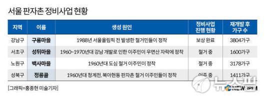 서울 판자촌 정비사업 현황 [그래픽=홍종현 미술기자] |