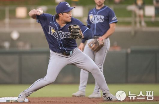 [웨스트 새크라멘토 로이터=뉴스핌] 손지호 기자 = 탬파베이 김하성이 14일(한국시간) 미국 캘리포니아주 새크라멘토의 서터헬스파크에서 열린 2025 미국 프로야구 메이저리그(MLB) 정규리그 애슬레틱스와 원정 경기에서 몸을 풀고 있다. 2025.08.14 thswlgh50@newspim.com