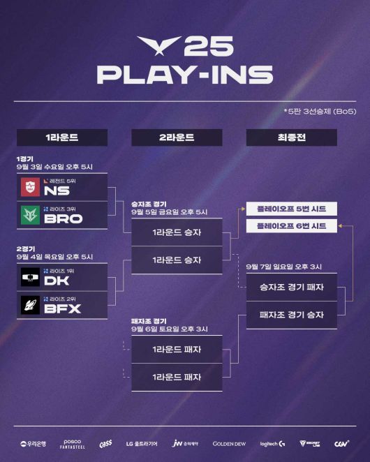 3일(수)부터 시작하는 플레이-인은 플레이오프에 합류할 두 팀을 가리는 과정으로, 레전드 그룹 5위인 농심 레드포스와 라이즈 그룹 1위부터 3위인 디플러스 기아, BNK 피어엑스, OK저축은행 브리온이 참가한다. 규정에 따라 레전드 그룹 5위를 차지한 농심 레드포스와 라이즈 그룹 3위인 OK저축은행 브리온과 대결하며 라이즈 그룹 1위 디플러스 기아와 2위 BNK 피어엑스가 4일(목) 맞붙는다.