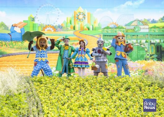 중앙 분수에는 토네이도에 휩쓸려 먼치킨랜드에 떨어진 도로시의 집이 임팩트 있게 연출돼 모험의 시작을 알리고, 마법사 오즈가 타고 온 열기구, 가을 초화로 만든 겁쟁이 사자 토피어리 등 곳곳에 시그니처 포토스팟이 즐비하다.