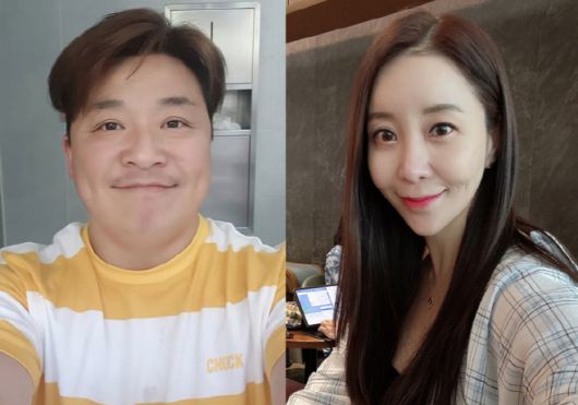 개그맨 윤정수(왼쪽)과 전 MBC스포츠 리포터 원자현./SNS