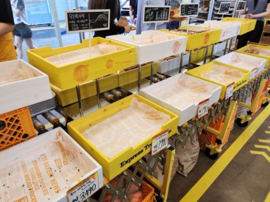 이른바 990원 소금빵으로 유명해진 성수동 'ETF 베이커리' 팝업스토어 내부 모습. 바게트 등을 비롯한 인기 제품이 빠르게 동난 모습이다. 허미담 기자 |