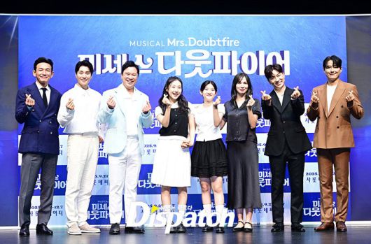 '미세스 다웃파이어' 측이 2일 서울 서대문구 이화여자대학교 삼성홀에서 제작발표회를 열었다. 황정민, 정성화, 정상훈, 린아, 이지훈, 김다현, 김태희, 설가은 등이 참석했다.