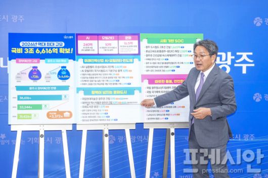▲강기정 광주시장이 29일 시청 기자실에서 2026년 정부예산안을 브리핑하고 있다. 2025.08.29ⓒ광주광역시 |