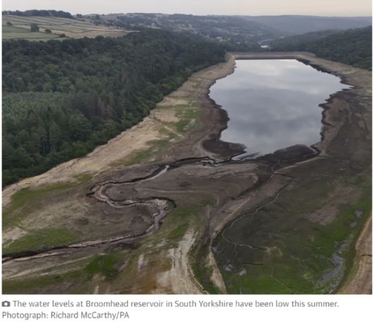영국의 사우스요크셔에 있는 저수지가 가뭄으로 메말라 있다. [사진=가디언] |