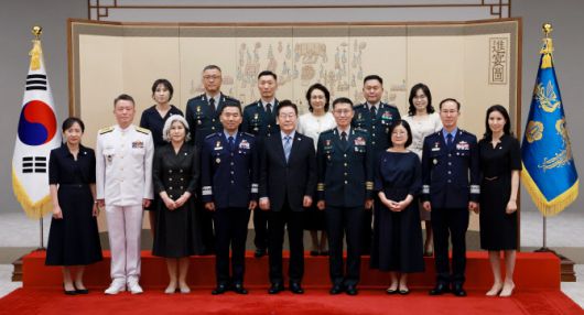 이 대통령 또 대장 진급자들에게 “정권이 아닌 국가에 충성하고, 개인이 아닌 직위로 근무해야 한다”면서 “사람에 충성하지 말고 국민을 바라봐 달라”고 당부했다. 이 대통령은 그러면서 “또한 군에 대한 국민의 신뢰가 지난 불법 계엄으로 많이 망가졌다”면서 “이를 되살리기 위해 노력해야 한다”고 덧붙였다.