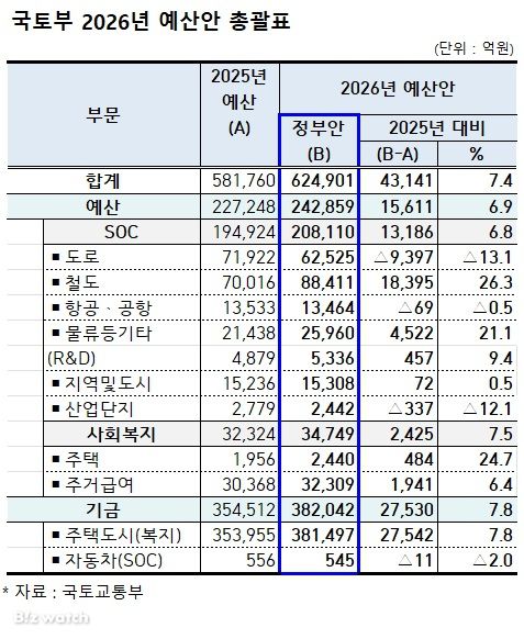 2026년 국토교통부 예산안 총괄표/자료=국토교통부 |