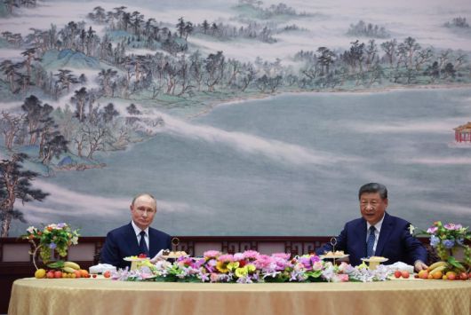 푸틴-시진핑 양자회담 블라디미르 푸틴 러시아 대통령(왼쪽)이 2일 중국 베이징 인민대회당에서 열린 시진핑 중국 국가주석과의 양자 회담에서 시 주석의 발언을 듣고 있다. AP연합뉴스 |