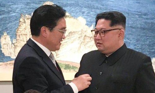2018년 판문점 남북 정상회담 만찬장에서 만난 우원식 국회의장과 김정은 북한 국무위원장. 연합뉴스 |