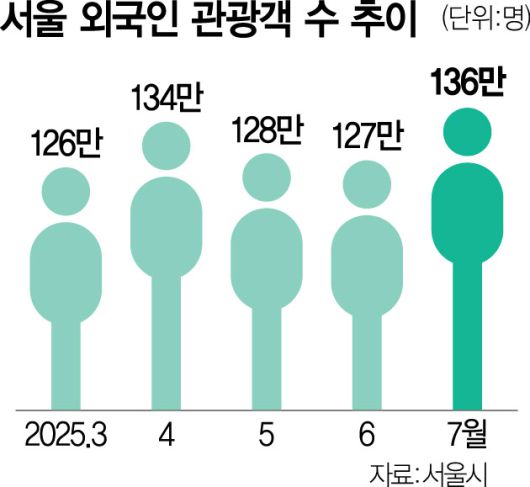 올 7월 서울을 방문한 외국인 관광객이 130만 명을 넘어서는 등 역대 최대치를 기록한 것으로 나타났다. 이는 넷플릭스 애니메이션 ‘케이팝 데몬 헌터스(케데헌)’ 열풍으로 서울을 찾아 다양한 체험 콘텐츠를 즐기려는 글로벌 MZ세대 관광객이 늘어났기 때문으로 풀이된다.