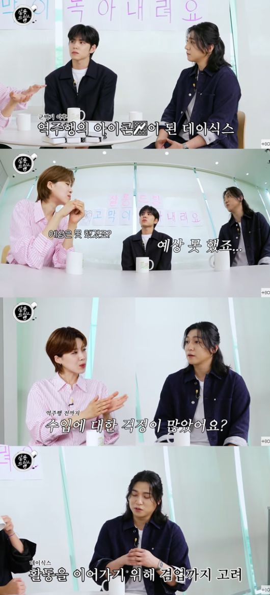 성진은 "없지 않았다. 저는 이 일을 겸업으로라도 계속해 나가고 싶었다. 이 추억들을 깡그리 없애버리고 싶은 생각이 전혀 없었다. 그러려면 주 수입원이 있어서 '이걸 계속 투자할 수 있게끔 만들어야지'라고 생각했다. 그런 생각을 많이 했다"라며 데이식스에 대한 애정을 드러냈다.