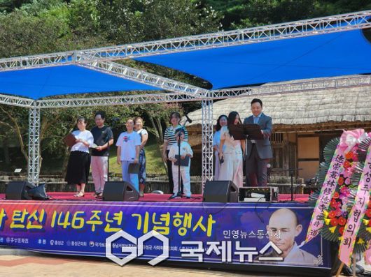 (홍성=국제뉴스) 박의규 기자 = 홍성군에 따르면 지난 29일 만해 한용운 선생의 탄신일을 맞이하여 그의 숭고한 삶과 정신을 기리는 '만해 한용운 선사 탄신 146주년 기념행사'가 결성면 성곡리 소재 한용운선생 생가지에서 거행되었다.