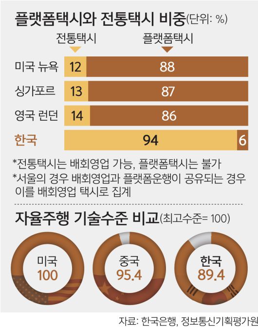 문제는 그동안 정체된 택시산업 구조와 70%에 달하는 개인택시 비중을 고려할 때 준비 없이 자율주행 시대를 맞이하면 택시종사자의 피해가 더 클 것이라는 점이다. 뉴욕시도 우버 도입 후 택시 채무 감면에 1조2000억원의 비용을 치렀다.