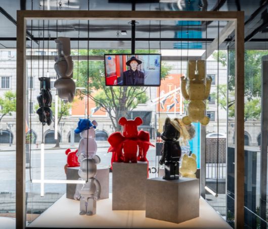 먼저 밀리너(모자 디자이너)의 거장 노부키 히즈메는 베어브릭 위에 '오트 쿠튀르' 기법으로 완성한 아방가르드 모자를 얹었다. 윈도우 디스플레이에 설치됐는데, 노부키 히즈메의 정체성을 잘 나타낸다. '오트 쿠튀르'는 최상급 맞춤 제작을 뜻하는 용어로, 디자이너 브랜드의 명성과 아이덴티티를 드러내는 예술적 행위로 많이 쓰인다.