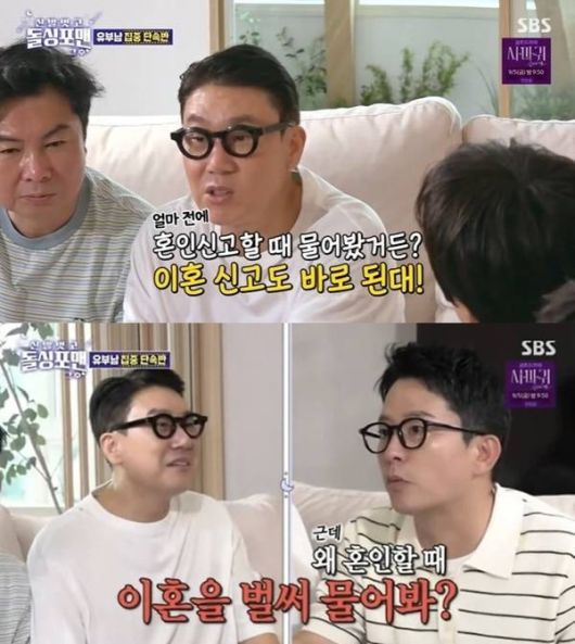 이상민은 “혼인신고 할 때 물어봤다. 이혼 신고도 바로 하면 끝난다고 하더라”고 말했다. 김준호가 “혼인신고를 하러 가서 왜 그걸 물어보냐”고 하자 이상민은 “그냥 물어본 거”라고 답했다. 습관적으로 물어봤냐고 몰아가자 이상민은 “구청에 이혼 신고가 있더라”고 말했다.