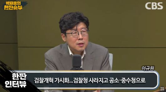 ◇ 박재홍> CBS 라디오 박재홍의 한판승부 2부 문을 열었습니다. 정기 국회가 개원을 했죠. 이런 가운데 검찰 개혁을 두고 여러 목소리가 나오고 있습니다. 또 진보 진영 내부에서도 다양한 목소리가 나오면서 과연 또 검찰 개혁의 문제가 또 다른 갈등의 씨앗이 되는 것이 아니냐는 목소리가 나오고 있는데 오늘 이분 모시고 검찰 개혁 이야기 나눠보겠습니다. 검찰 출신이기도 하세요. 조국혁신당의 이규원 사무부총장입니다. 어서 오십시오.