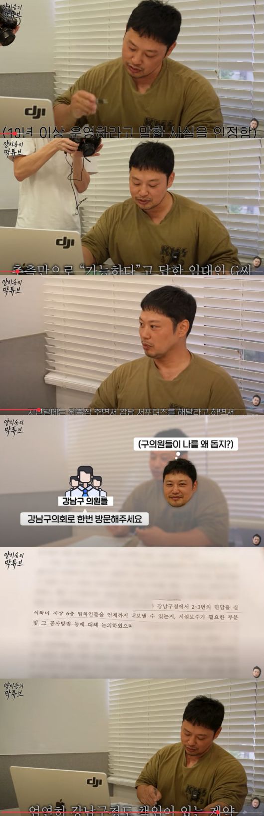 또 양치승은 강남구청 공무원 떄문에 피해를 봤다고 주장했다.