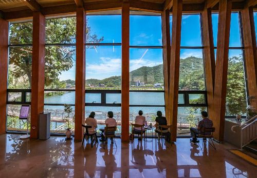 아중호수도서관에서 창밖 풍경을 바라보며 휴식하는 시민들 [사진/임헌정 기자] |