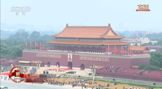 3일 오전 중국 전승절 80주년 열병식이 열리는 베이징 톈안먼의 모습. 중국중앙TV 화면 캡쳐