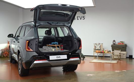 기아는 EV5가 정통 SUV 바디타입을 적용한 패밀리 전용 전기차라는 점을 강조하고 있다. 넓은 실내 공간과 2열 풀플랫 시트, 시트백 테이블, 센터콘솔 등 가족 중심의 편의 사양을 대거 적용했다는 설명이다. 실제 EV5는 전장 4610mm, 전폭 1875mm, 전고 1675mm, 축간거리 2750mm로 기존 준중형 전기차 대비 실내 공간이 여유롭다. 1041mm의 2열 레그룸은 동급 최고 수준이다. 965리터의 러기지와 44.4리터의 프렁크 공간도 확보했다.
