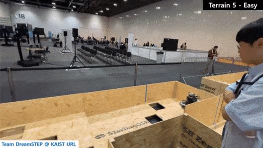 명현 교수팀이 개발한 드림워커가 사족로봇 자율보행 경진대회에서 계단을 오르고 있다.[KAIST 제공] |