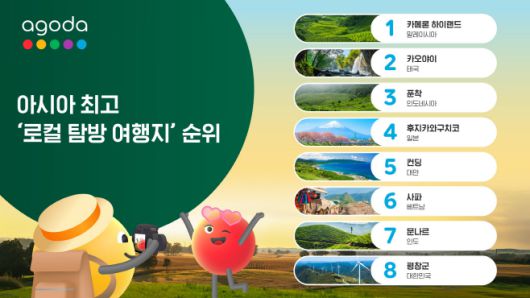 아고다는 지난 2월 15일 ~ 8월 15일 숙박 검색 데이터를 기반으로 아시아 8개 시장 내 인구 5만 명 이하의 외곽 여행지를 분석한 결과, 대한민국 평창군이 8위에 선정됐다고 3일 밝혔다.
