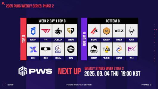 '2025 PWS: 페이즈2' 2주 2일차 경기는 4일 오후 7시에 열린다. 1일차 경기의 상위 8개 팀과 PWS 예선전을 뚫고 올라온 8개 팀의 승부가 펼쳐진다.